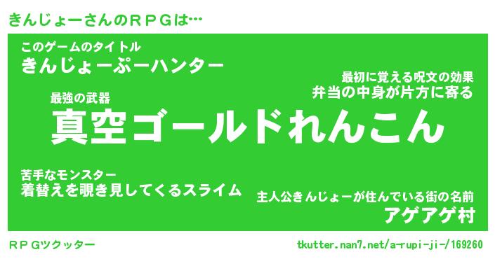 | 男性向けラノベタイトル風あだ名 | 『キンジョーアートオンライン』 |