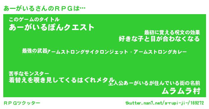 | ヒーロー風カッコイイあだ名 | 『スーパーアーガイル』『魔戒騎士アー』 |