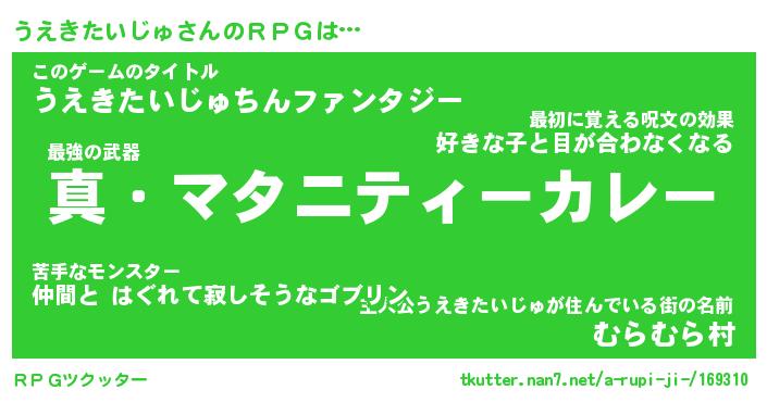 | 胡散臭い通販商品みたいなあだ名 | 『億万長者になれる霊験あらたかなお札…その名も「うえきたいじゅ」』 |
