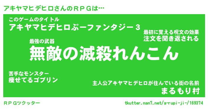 | ヒーロー風カッコイイあだ名 | 『スーパーアキヤマヒデヒロ』 |