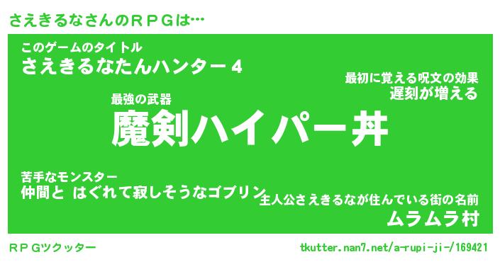 | ヒーロー風カッコイイあだ名 | 『スーパーサエキルナ』『魔戒騎士サエ』 |