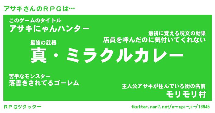 | 男性向けラノベタイトル風あだ名 | 『アサキアートオンライン』 |