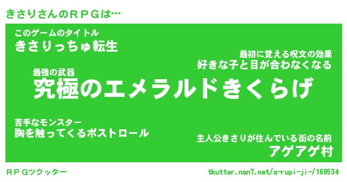 | 男性向けラノベタイトル風あだ名 | 『キサリアートオンライン』 |