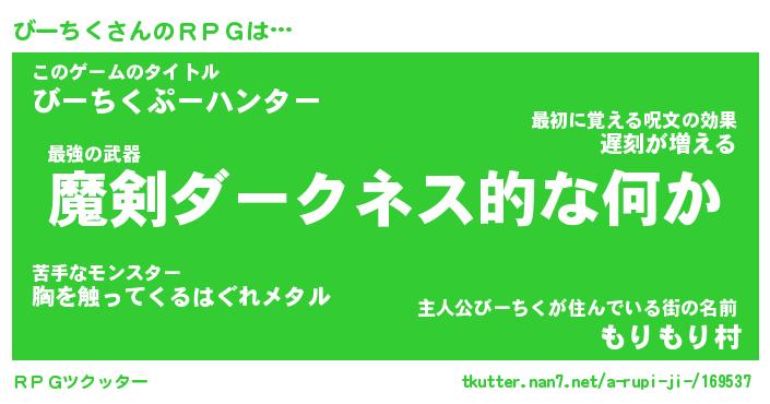 | 男性向けラノベタイトル風あだ名 | 『びーちくの憂鬱』 |