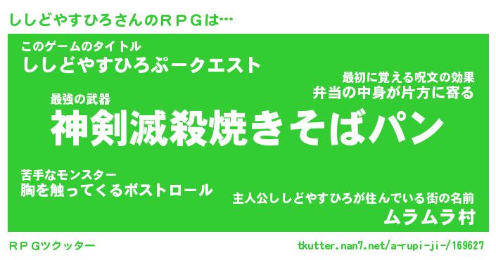 | 胡散臭い通販商品みたいなあだ名 | 『モテモテ間違いなし霊験あらたかなお札…その名も「ししどやすひろ」』 |