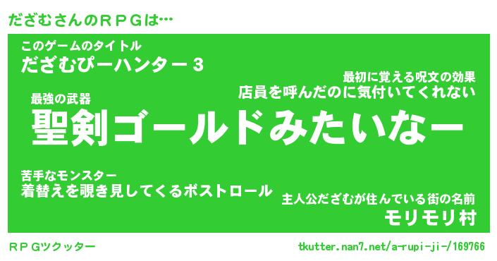 | 男性向けラノベタイトル風あだ名 | 『だざむの憂鬱』 |