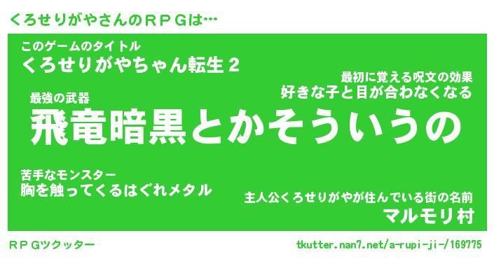 | 伝説のあだ名 | 『封印されし傭兵くろせりがや』 |
