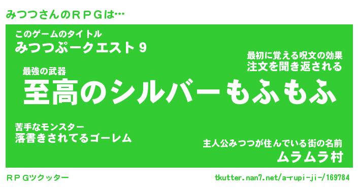 | 男性向けラノベタイトル風あだ名 | 『ミツツアートオンライン』 |