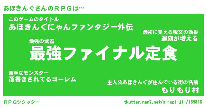 | 料理風あだ名 | 『節約★あほきんぐと油揚げの玉子丼』 |