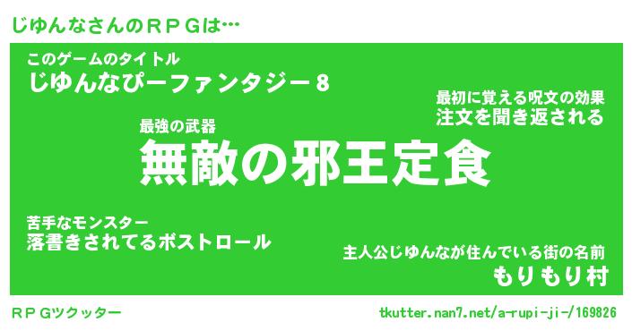 | 男性向けラノベタイトル風あだ名 | 『ジユンナアートオンライン』 |
