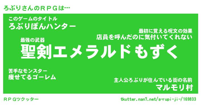 | 男性向けラノベタイトル風あだ名 | 『ろぶりの憂鬱』 |