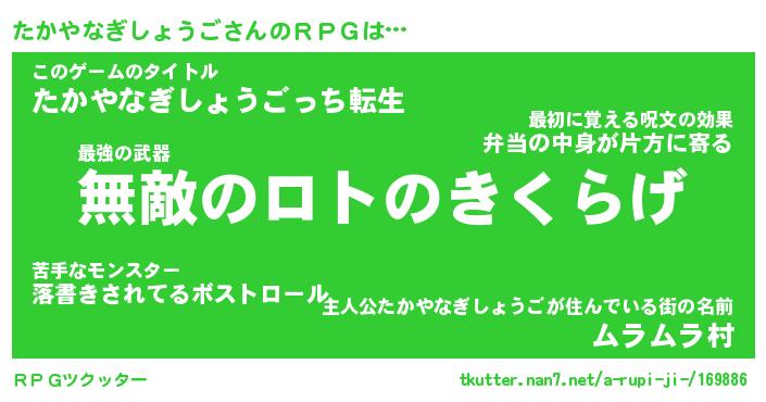 | 胡散臭い通販商品みたいなあだ名 | 『億万長者になれるブレスレット…その名も「たかやなぎしょうご」』 |