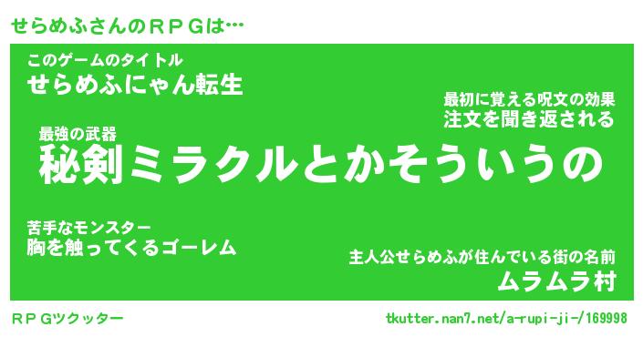 | 伝説のあだ名 | 『伝説の竜騎士せらめふ』 |