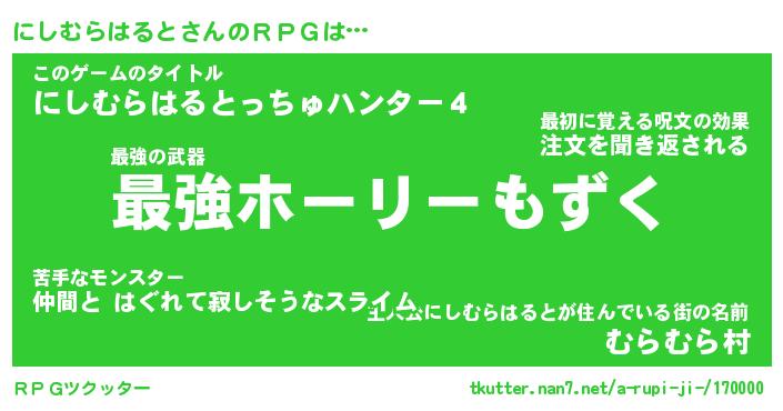| ツイッター | にしむらはるとさんのツイッターID『katatsumuri_star』 |