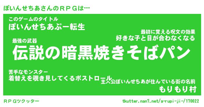 | 男性向けラノベタイトル風あだ名 | 『ぽいんせちあの憂鬱』 |