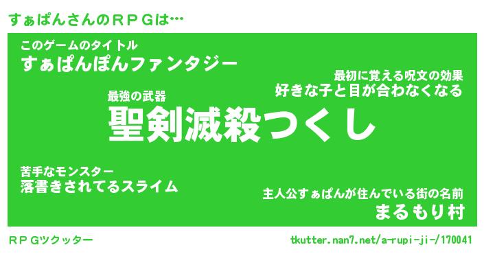 | ファンタジー風あだ名 | 『スァフェル』『エターナルスァパンー』 |