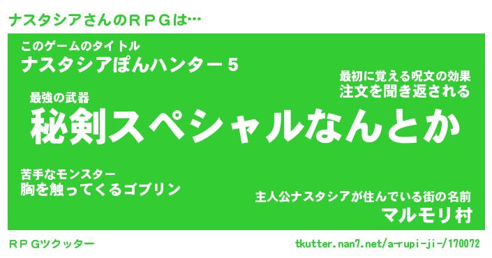 | ヒーロー風カッコイイあだ名 | 『スーパーナスタシア』『魔戒騎士ナス』 |