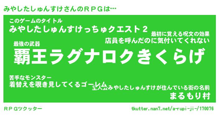 | 伝説のあだ名 | 『封印されし竜騎士みやしたしゅんすけ』 |