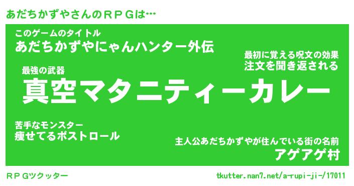 | 男性向けラノベタイトル風あだ名 | 『アダチカズヤアートオンライン』 |