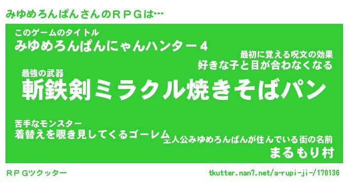 | 男性向けラノベタイトル風あだ名 | 『みゆめろんぱんの憂鬱』 |