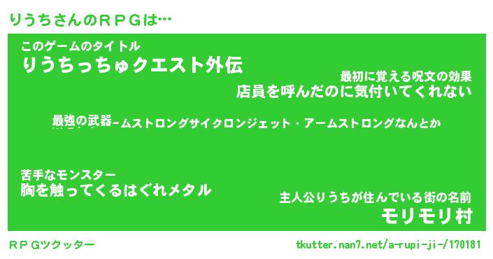 | ファンタジー風あだ名 | 『リウフェル』『エターナルリウチー』 |