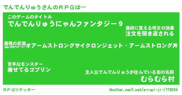 | 男性向けラノベタイトル風あだ名 | 『デンデンリュウアートオンライン』 |