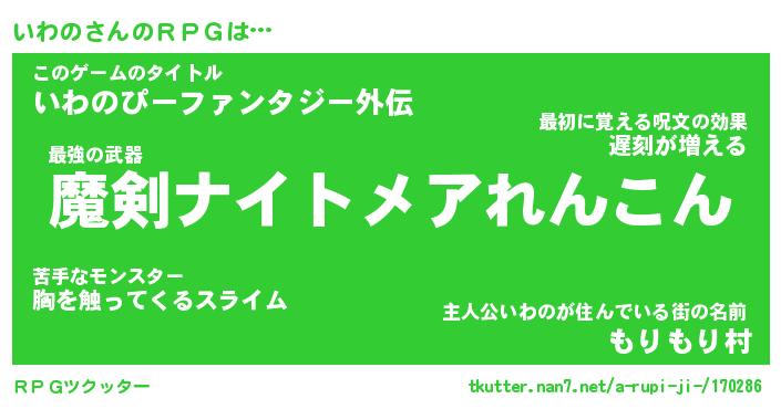 | ファンタジー風あだ名 | 『イワフェル』『エターナルイワノー』 |