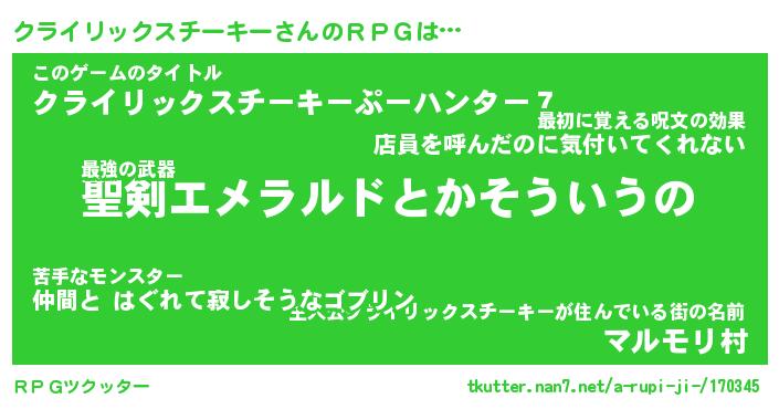 | 胡散臭い通販商品みたいなあだ名 | 『必ず成功する霊験あらたかなお札…その名も「クライリックスチーキー」』 |