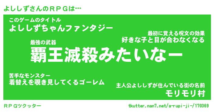 | ファンタジー風あだ名 | 『ヨシフェル』『エターナルヨシシズー』 |