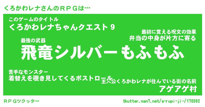 | 伝説のあだ名 | 『封印されし傭兵くろかわレナ』 |