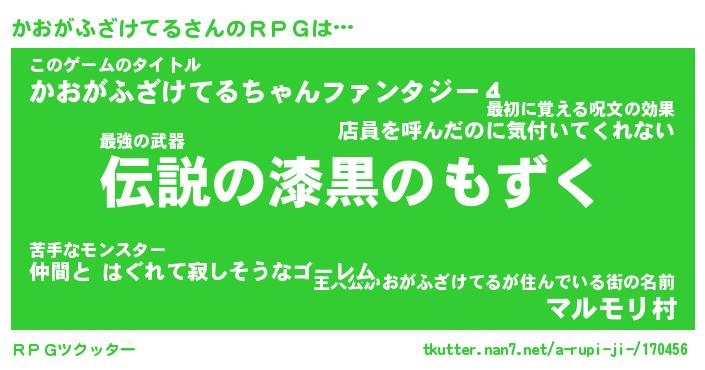 | 料理風あだ名 | 『節約★かおがふざけてると油揚げの玉子丼』 |