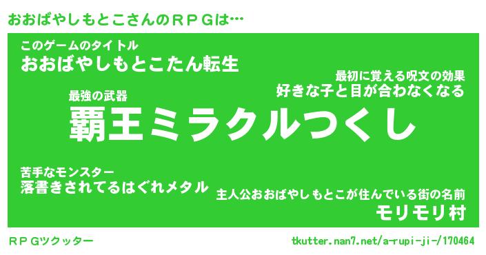 | 男性向けラノベタイトル風あだ名 | 『オオバヤシモトコアートオンライン』 |