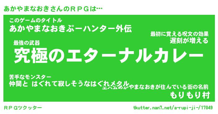 | 料理風あだ名 | 『節約★あかやまなおきと油揚げの玉子丼』 |