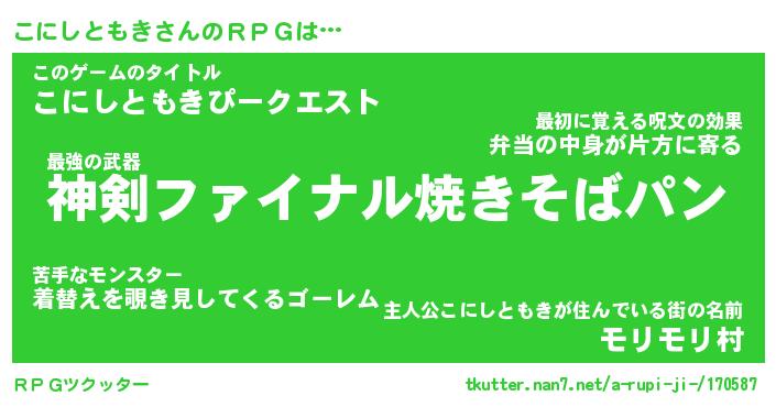 | 伝説のあだ名 | 『不死鳥の竜騎士こにしともき』 |