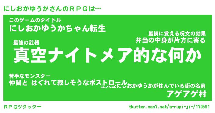 | 胡散臭い通販商品みたいなあだ名 | 『億万長者になれる霊験あらたかなお札…その名も「にしおかゆうか」』 |