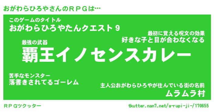 | 伝説のあだ名 | 『封印されしスナイパーおがわらひろや』 |