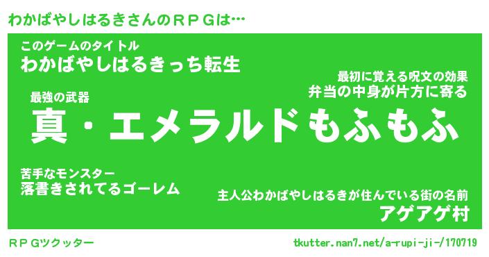 | 男性向けラノベタイトル風あだ名 | 『ワカバヤシハルキアートオンライン』 |
