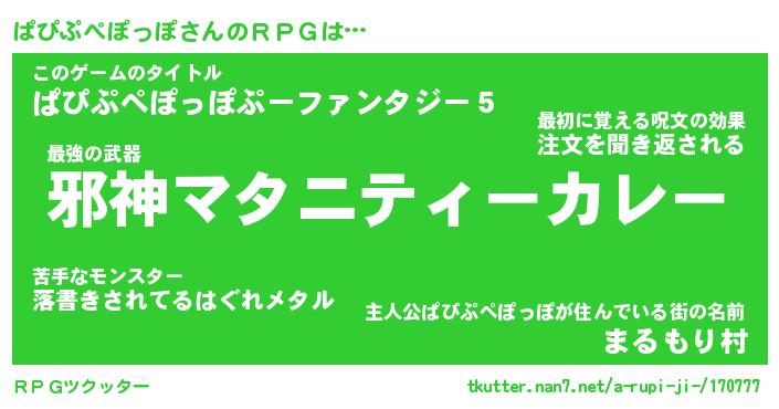 | 伝説のあだ名 | 『封印されしスナイパーぱぴぷぺぽっぽ』 |