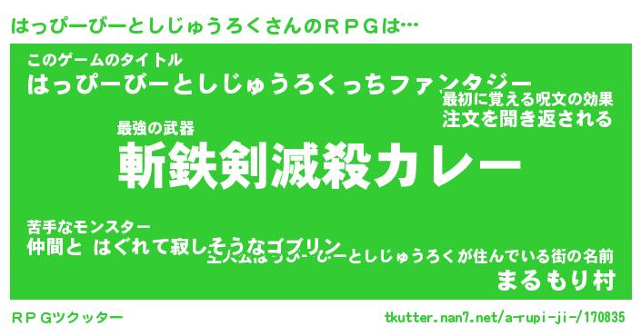 | 男性向けラノベタイトル風あだ名 | 『はっぴーびーとしじゅうろくの憂鬱』 |