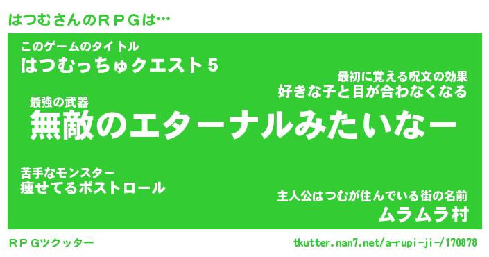 | 伝説のあだ名 | 『封印されし傭兵はつむ』 |