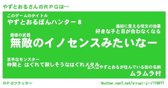 | 伝説のあだ名 | 『封印されしスナイパーやずとおる』 |