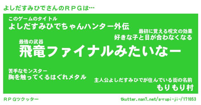 | ポケモン風あだ名 | 『ヨシチュウ』『ヨシダダネ』 |