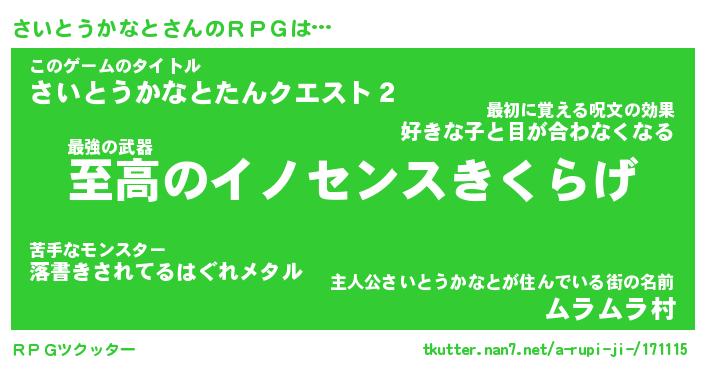 | 男性向けラノベタイトル風あだ名 | 『サイトウカナトアートオンライン』 |