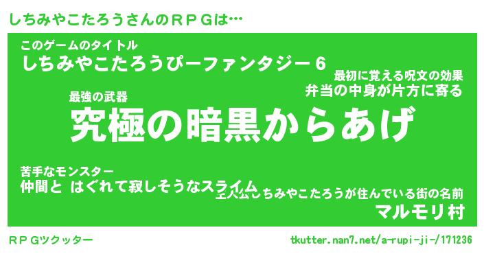| 男性向けラノベタイトル風あだ名 | 『しちみやこたろうの憂鬱』 |