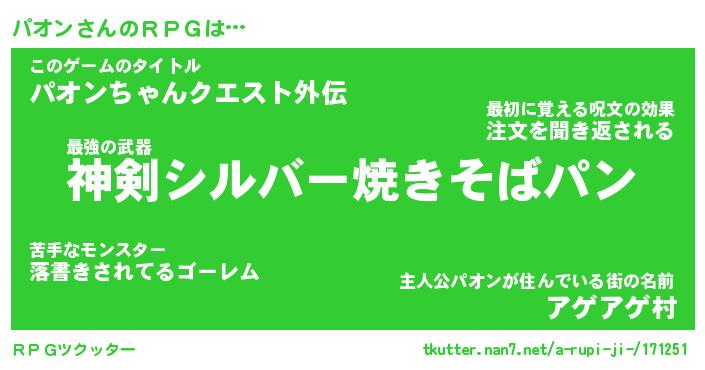| 料理風あだ名 | 『節約★パオンと油揚げの玉子丼』 |