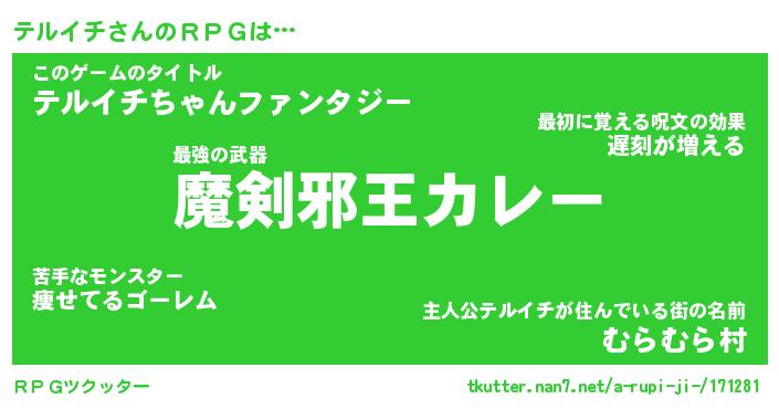 | ファンタジー風あだ名 | 『テルフェル』『エターナルテルイチー』 |