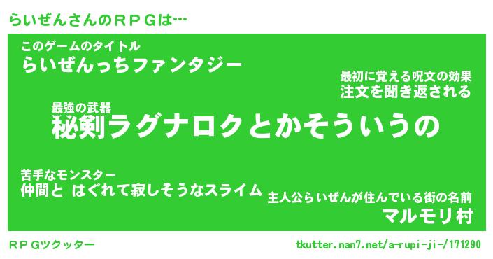 | 男性向けラノベタイトル風あだ名 | 『らいぜんの憂鬱』 |