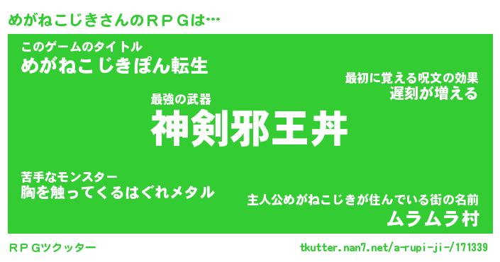 | 男性向けラノベタイトル風あだ名 | 『めがねこじきの憂鬱』 |