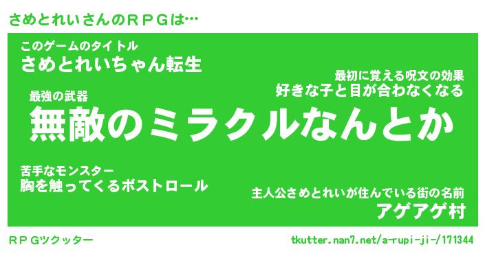 | 伝説のあだ名 | 『封印されし竜騎士さめとれい』 |