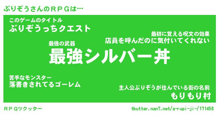 | 料理風あだ名 | 『節約★ぶりぞうと油揚げの玉子丼』 |
